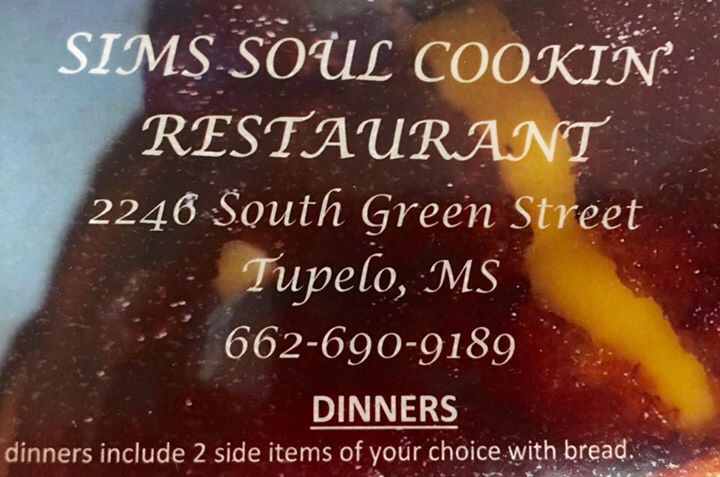 Sims SouL Cookin’ Restaurant @ 2246 South Green Street, Tupelo, MS. (Formally Malibu’s across from Super Sagless.)