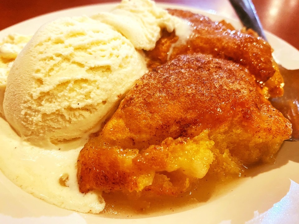 Apple dumplings ($4.00) add scoop of vanilla bean ice cream ($1.00 extra)