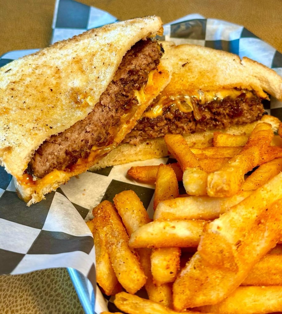 Patty Melt – The patty melt isn’t as tall as the other Skybox specialty burgers, but does provide maximum taste in a smaller package! Two slices of toasted bread is carefully layered with a house prepared ground beef patty, melted cheese, caramelized onions, and Pub sauce. This is marked as a local favorite, and with just one bite it’ll be a favorite of yours too!