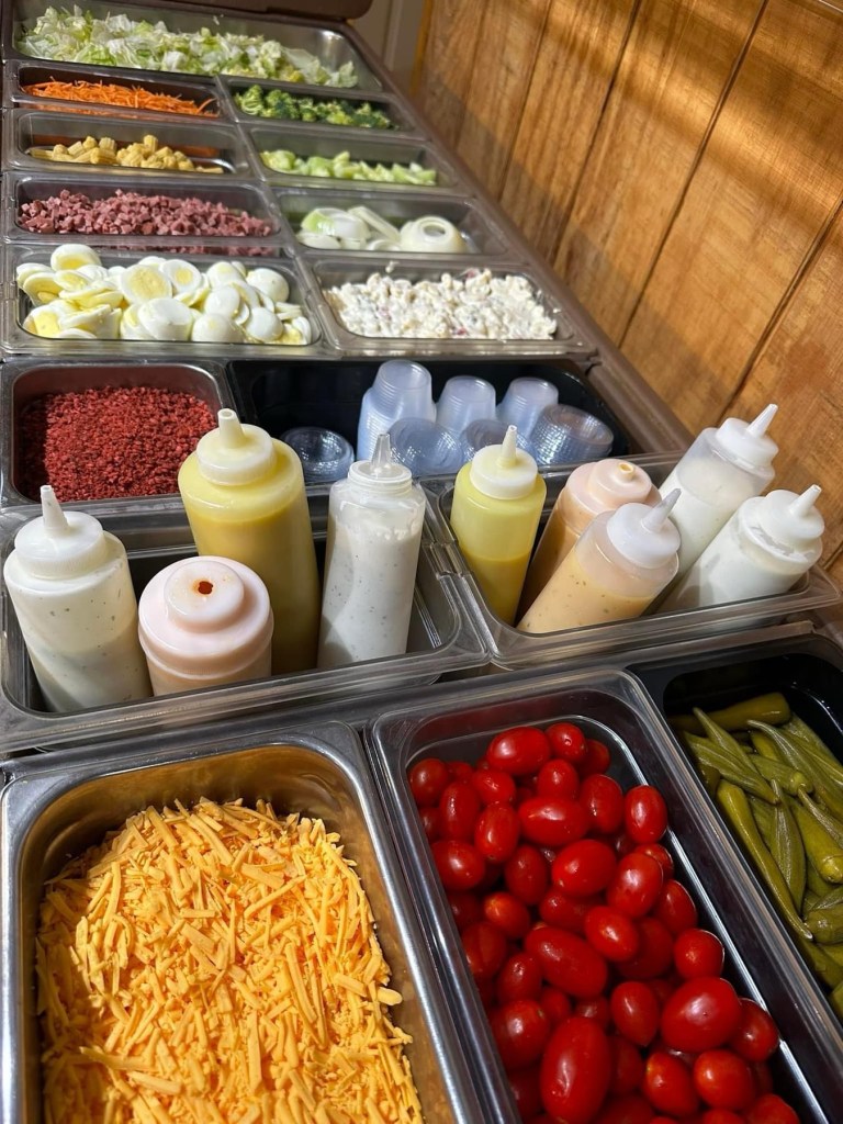 🔥Fresh Salad Bar – I arrived just as it was finished being set up. There are several things I look for on a salad bar that shows attention to detail and pride in the art of it all. Just a few that I found were freshly boiled eggs, cherry tomatoes, bite size pieces of broccoli, and house made salad dressings.