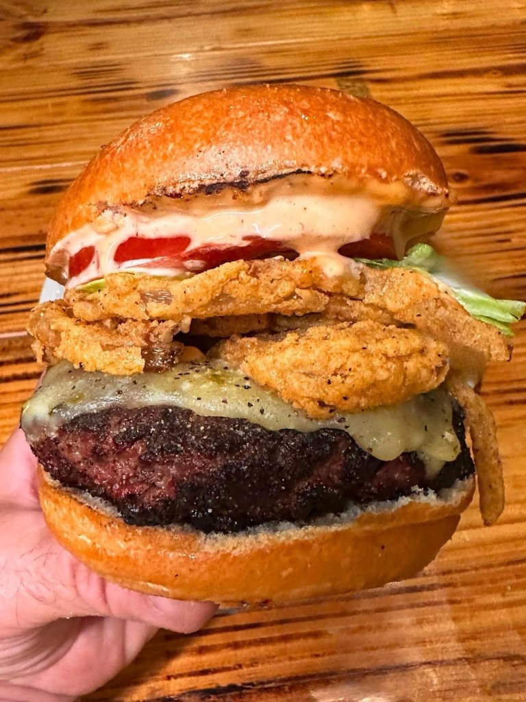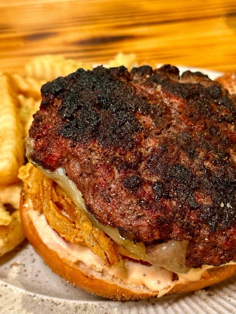 🔥Come Back Burger – When I asked for burger recommendations, I was told that this has already become a local favorite! It’s a huge house prepared patty that is well seasoned with peppery flavors, grilled to a nice charred crust, topped with Come Back sauce, pepper jack, Hickory Bacon, fried onions, lettuce and tomato. I estimate the patty to be around 1/2 pound. This would remind you of a delicious home grilled burger, if the person grilling it was a master chef!!