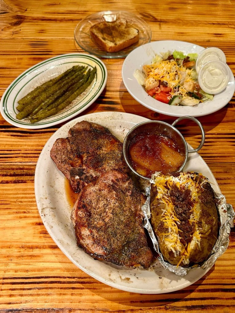 🔥Pork Chop Ribeye – As I mentioned above, I knew that the owner could prepare mouthwatering beef steaks from visiting her previous restaurant, so I decided on the Bone-In Pork Chop this time with a side of Apple Chutney. The menu estimates each Pork Ribeye to weigh approximately 12/14 onces. Lexi believed the chops to be too close to the mark. So myself and others ordering from that cut received two slices instead of just one!