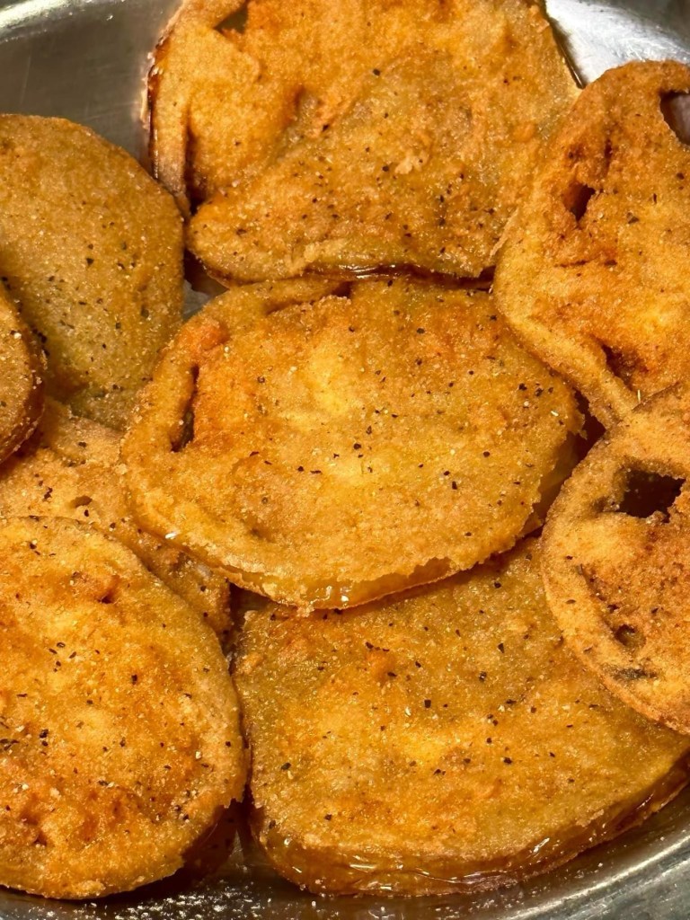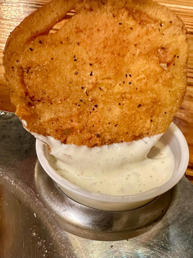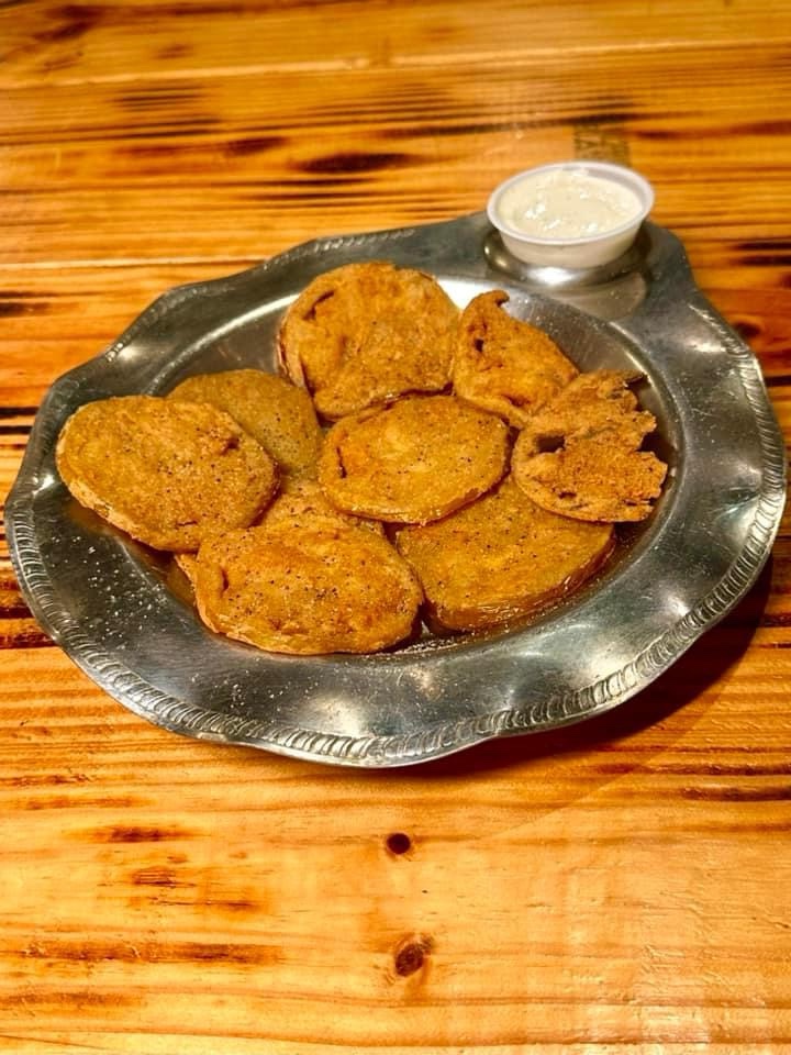 🔥Fried Green Tomatoes – The Green Tomatoes are sliced wafer thin, hand breaded, deep-fried to a golden crisp and served with house ranch dressing. The recipe is from Lexi’s grandmother and is a must try!