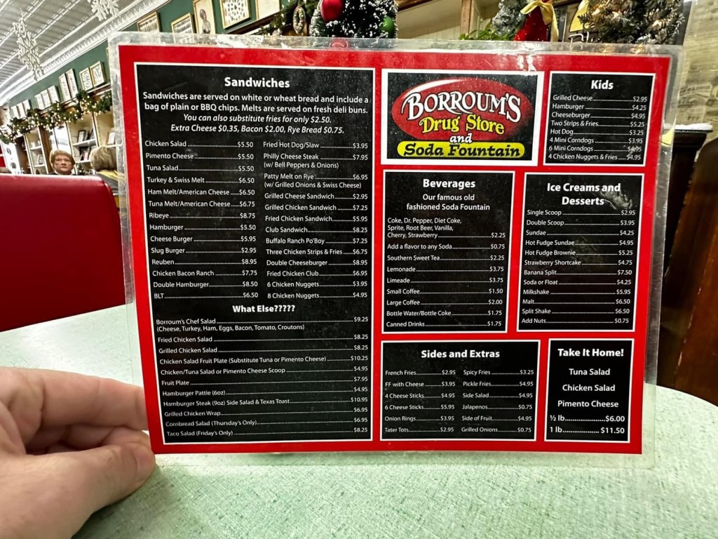 Borroum’s Drug Store & Soda Fountain @ 604 East Waldron Street, Corinth, MS. Open Monday through Saturday 9am – 3pm. Visit their page for updated hours, specials, and more. They only accept cash or check, so bring some green! #eowjj2023