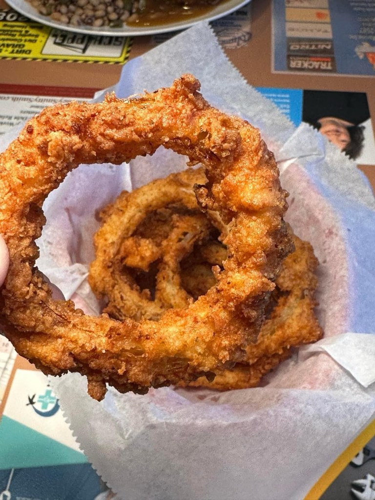 The hand battered onion rings were absolutely delicious. With a perfectly crispy exterior and a tender, sweet onion center, these were a true delight, whether as a side dish or an appetizer, they are sure to satisfy your cravings and leave you wanting more.