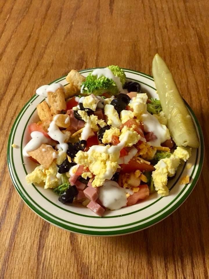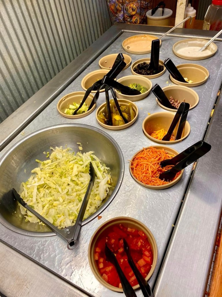 I have to give props to the salad bar first. It’s compact and packs a punch with shredded lettuce, thick ranch dressing, boiled eggs, diced tomatoes, small pieces of broccoli, and black olives… this is a list of some of my favorite salad bar selections and Tin Top Grill has them all! I could have stopped after the nice salad. But y’all know I won’t! 😛