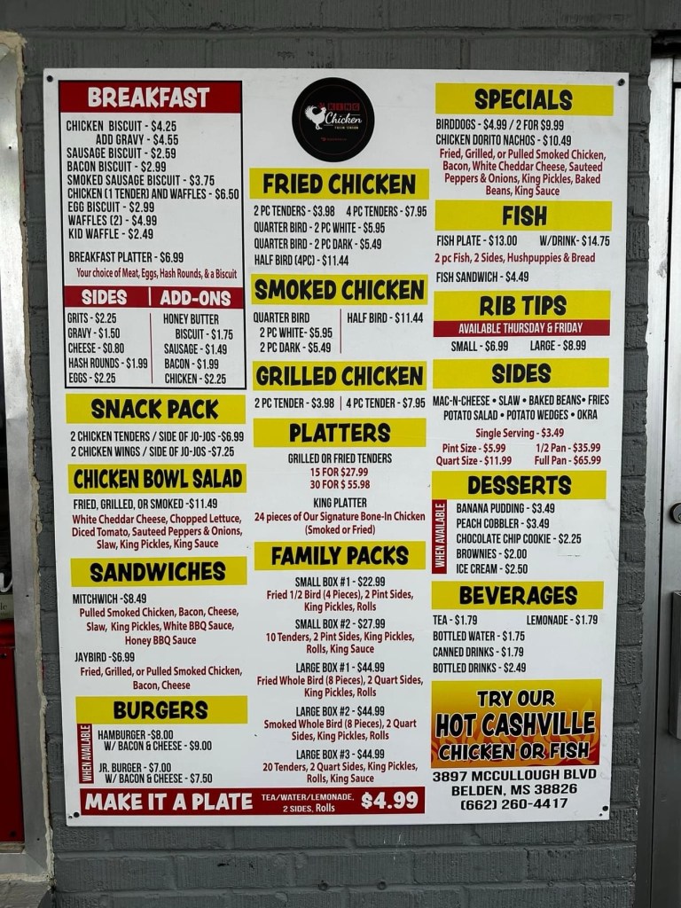King Chicken Fillin’ Station @ 3798 McCullough Blvd, Tupelo, MS 38826. 2nd location to open soon in Tupelo across from the ICC campus.