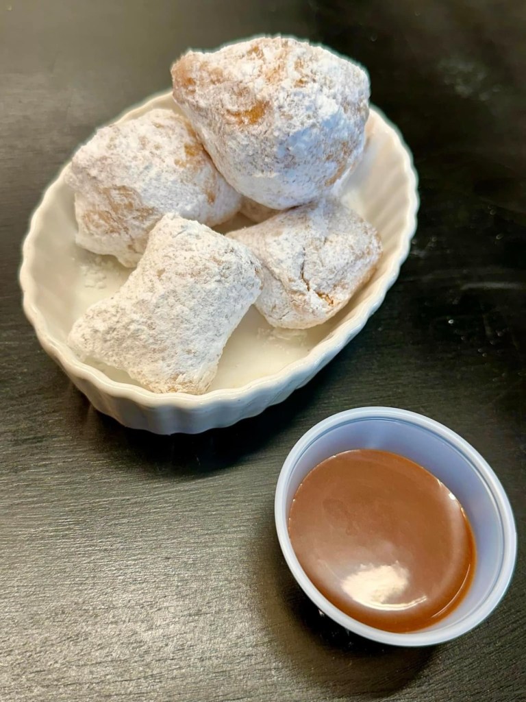 For dessert, you can have some dip ice cream or choose a specialty sweet treat off the menu. The crew is always coming up with something new, and during my visit they were rolling out fresh made deep fried beignets with powdered sugar and chocolate dipping sauce.