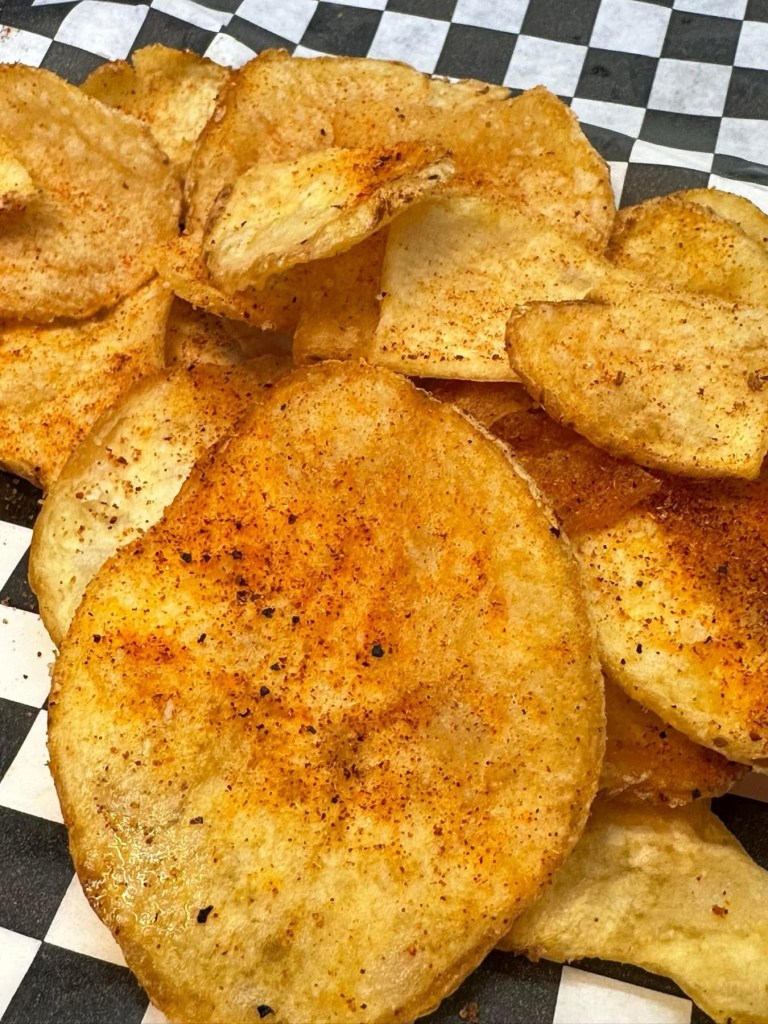 The homemade fried chips are a nice appetizer and pair well with a fresh burger. They are well seasoned and can be eaten as is, or use some homemade dressing as a dip.