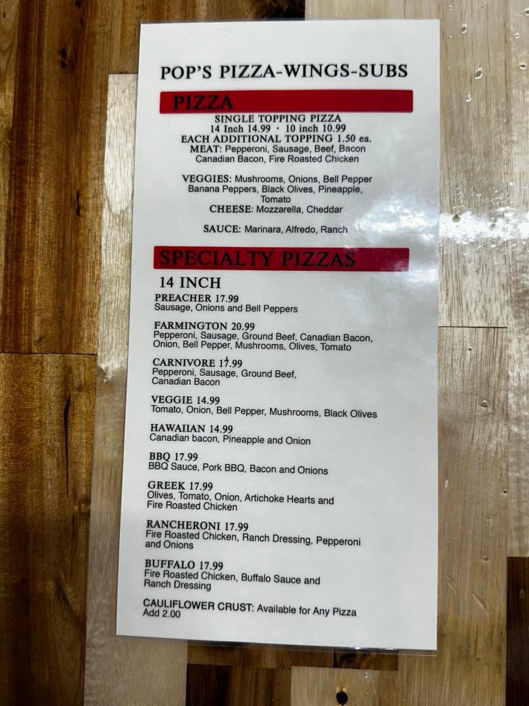 Owner Reid Bostick says, “At POP’S, we pride ourselves on our friendly service and serving only the freshest ingredients. From our daily-made pizza dough to our hand-packed, unfrozen beef burgers. We believe that the community we serve deserves the very best and we fully appreciate their continued support.“