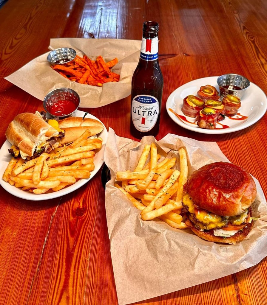 🔥Smash Burger – two beef Pattie’s cooked on cast iron, placed on a heated bun and loaded with your choice of toppings. I really enjoyed the two thinner patties. It allowed for more crispy edges and that delicious char flavor. The shoe string type fries were the more deluxe version that have extra breading to make them a little juicy more crisp.