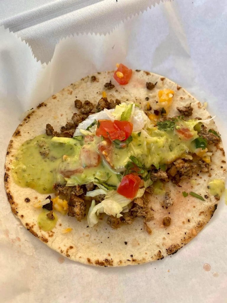 When you want a taco that’s not just a taco, go get you some Jerk Chicken Tacos! A soft shell filled with finely chopped Jerk seasoned chicken, topped with cheese, lettuce, tomato, cilantro, and sauce. Like the fries, it was perfectly seasoned and sauced for the perfect amount of added flavor!