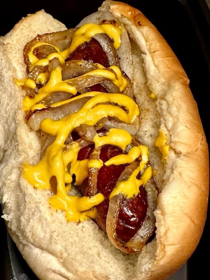 The grilled onions added a hint of sweetness, complementing the savory sausage, while the tangy mustard provided a zesty kick. This classic combination never fails to please the taste buds.