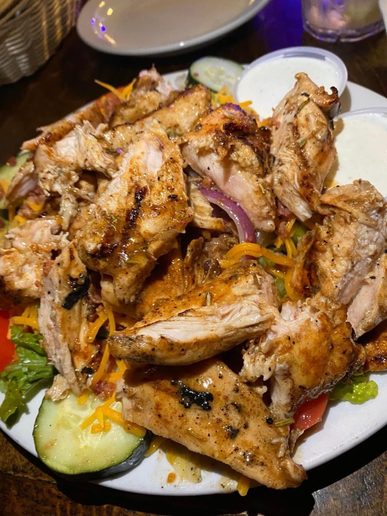 The grilled chicken salad held its own also! When I first saw it heading our way it definitely had the WOW factor! A really well constructed salad with a mountain of tender freshly grilled chicken breast pilled on top. Truly a beauty to behold.