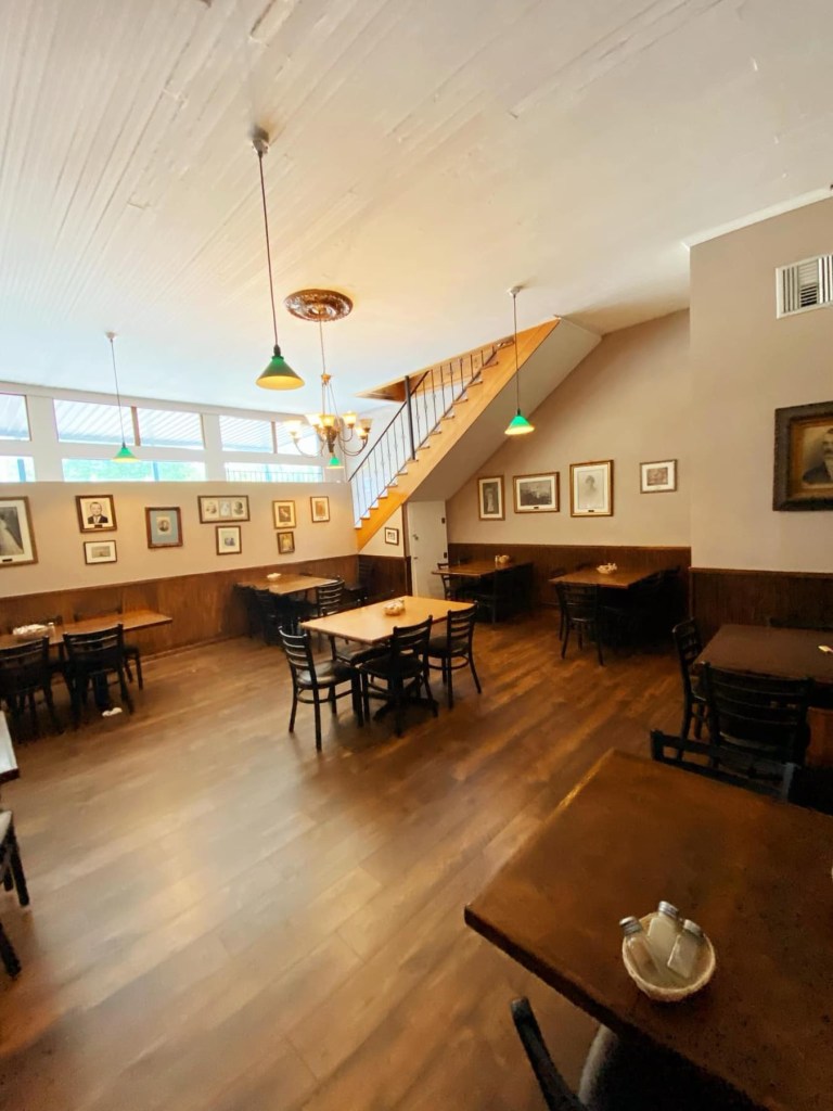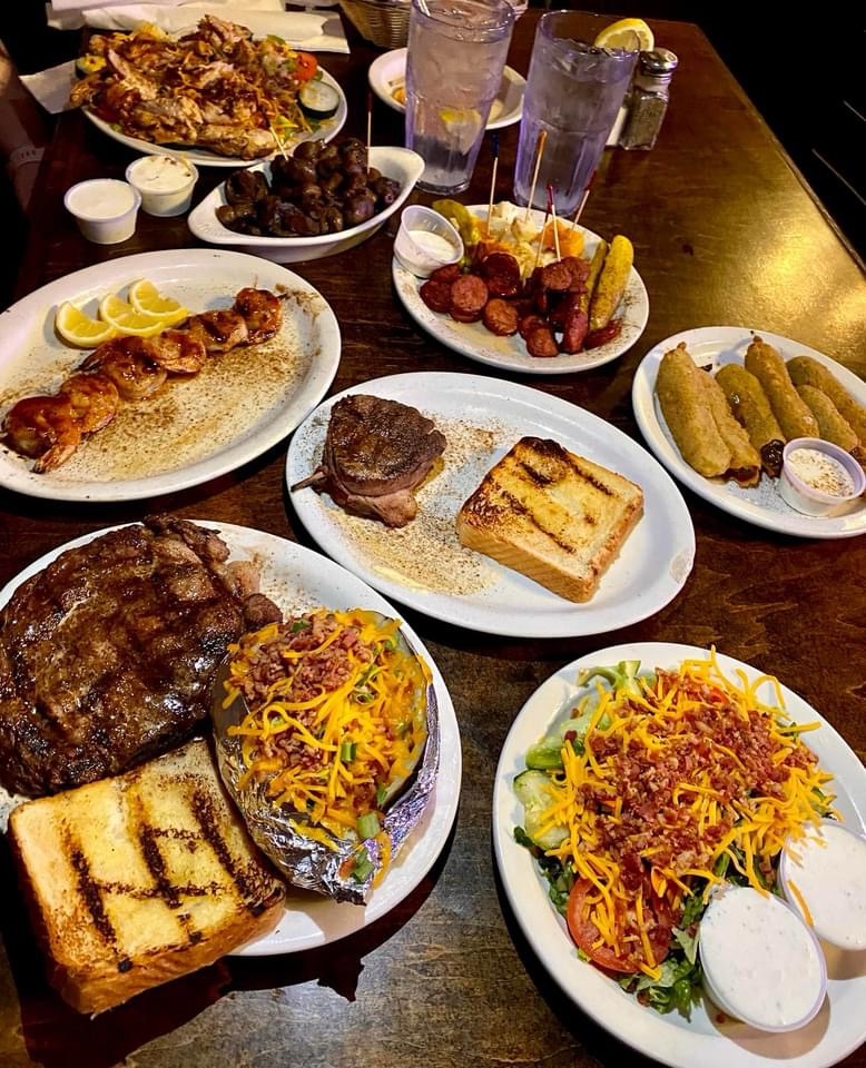 Once inside, we took a quick look around. The upstairs is actually occupied by their companion Oyster Bar. This hidden gem is located above the steakhouse, hosting a great laid back atmosphere. They offer a verity of drinks and pub food ranging from oysters, burgers, PO’ BOYS, and Serf & Turf. Plus, you can sit out on the terrace and enjoy the fresh country air and beautiful small town views.