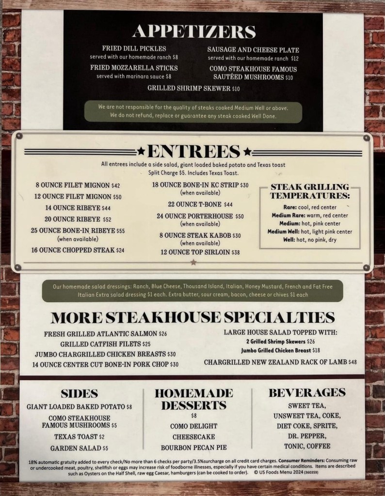 The Como Steakhouse is a must visit, foodie destination, whether you live the next town over or the other side of the state like me! So drop by enjoy their southern hospitality, and tell them I sent ya!
