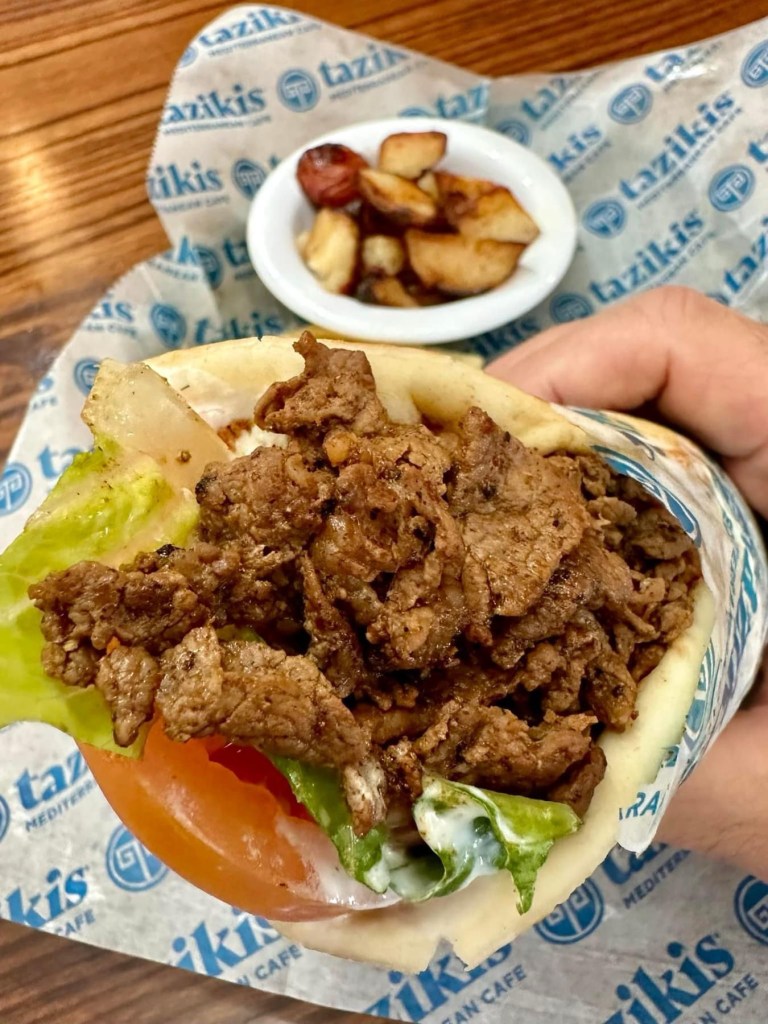 I’ve had lamb chops but this was my first grilled Lamb Gyro. It’s finely chopped lean lamb on a bed of mixed lettuce with grilled onions, tomato, and Taziki sauce. Y’all, every bite was a savory experience without a single bite wasted! Next time you’re thinking about getting a sub or burger, treat yourself and get a Taziki Gyro instead!