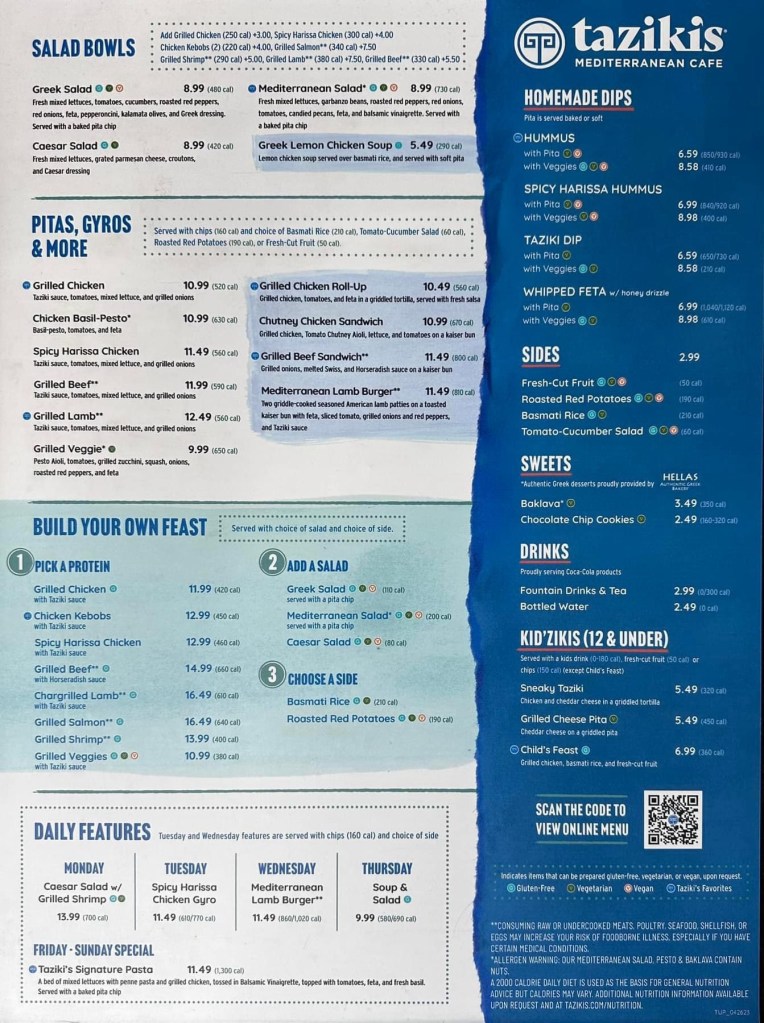 Taziki’s Mediterranean Café serves a menu inspired by the flavors of Greece and the Mediterranean region.