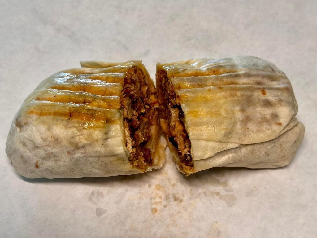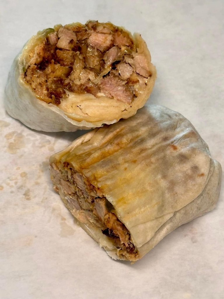 If you’re craving chicken then you definitely need to order the Chicken Shawarma Wrap. It’s a wrap stuffed with savory shawarma chicken, pickles, and garlic sauce. It’s about the size of two baseballs and could definitely be shared or save half for another meal.