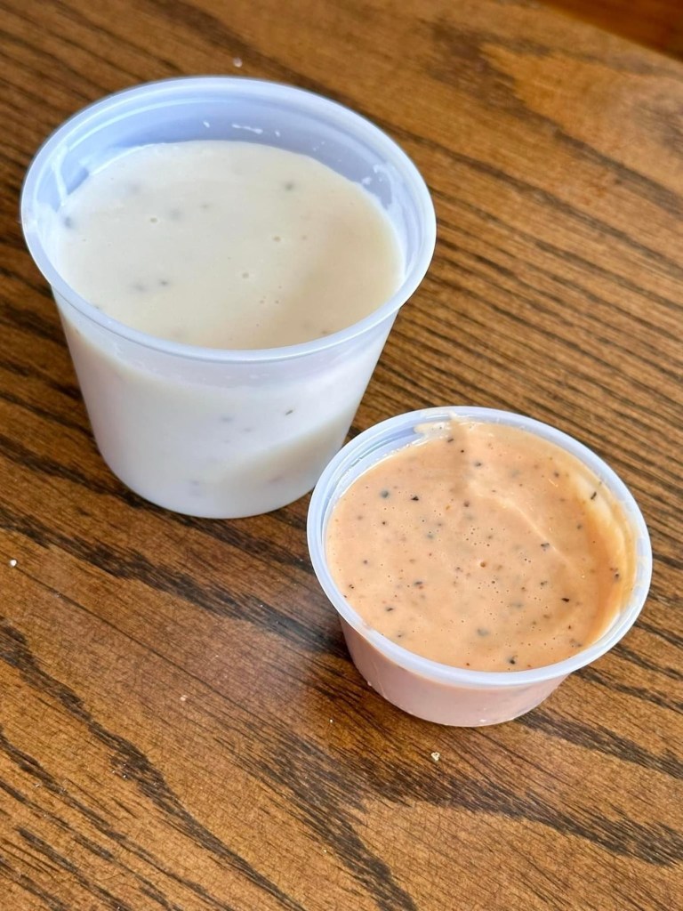 To cool it back down a couple notches I took a bite of roll and some coleslaw, and went in again. Oh, and my dipping choice was some Connie’s white gravy. I also really like the Connie’s signature sauce which reminds me of a remoulade version.
