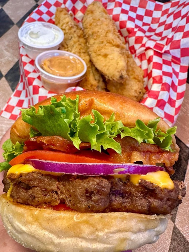 If you’re just wanting an all American burger then the Bacon Cheeseburger is available. It comes with all the traditional toppings that meld perfectly into a simply delicious meal. Just add a side with drink and you’ve set.