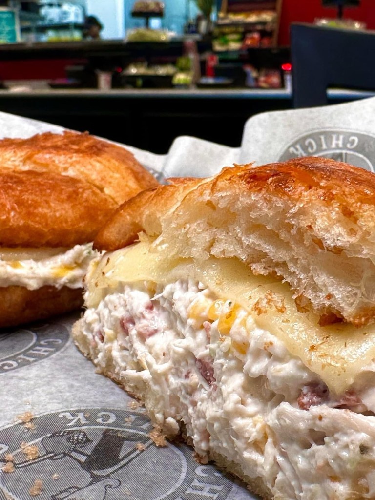 Croissant with mozzarella cheese and your choice of chicken salad. It’s simply delicious!!
