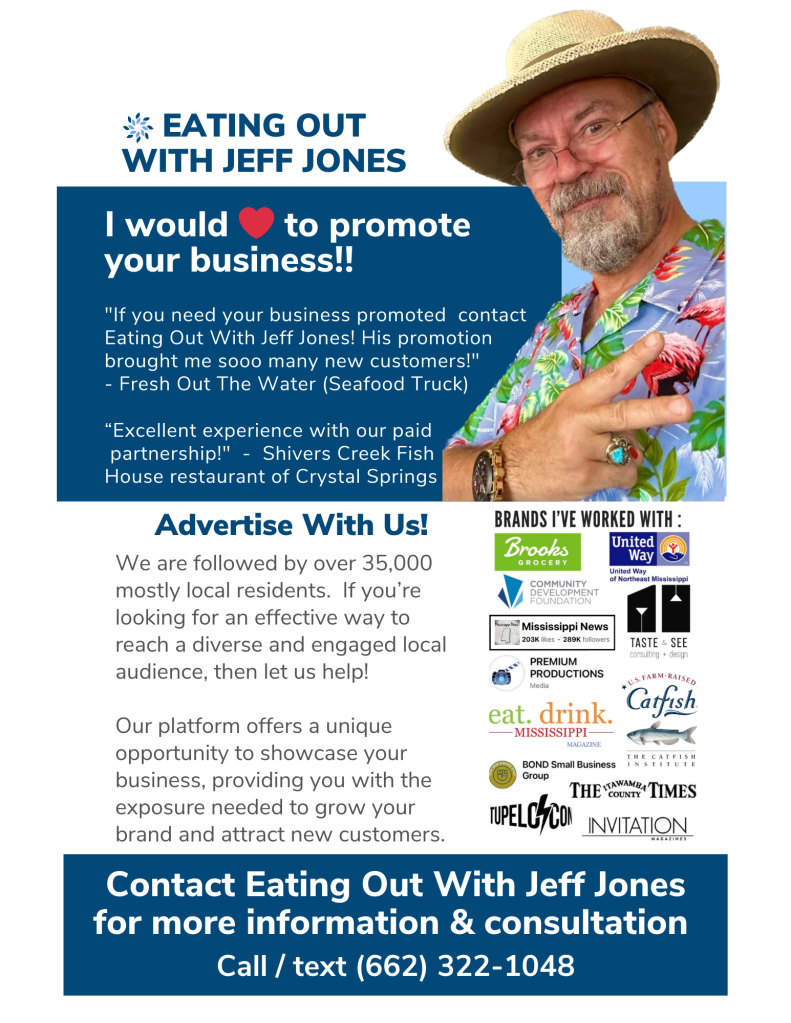 Follow Eating Out With Jeff Jones for events, new restaurants, LOCAL Favorites, and their FAMOUS foods!