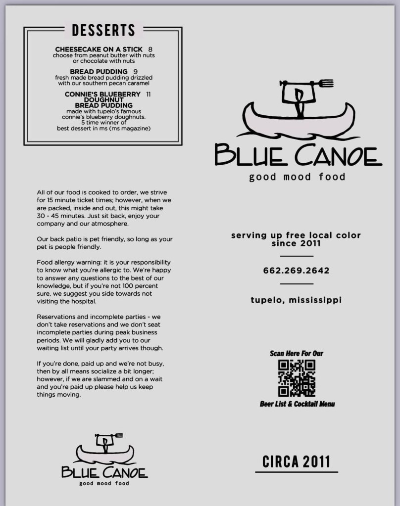 When visiting the Blue Canoe, you’ll experience delicious food, big helpings, great service, all in a relaxed atmosphere…Good Mood Food!