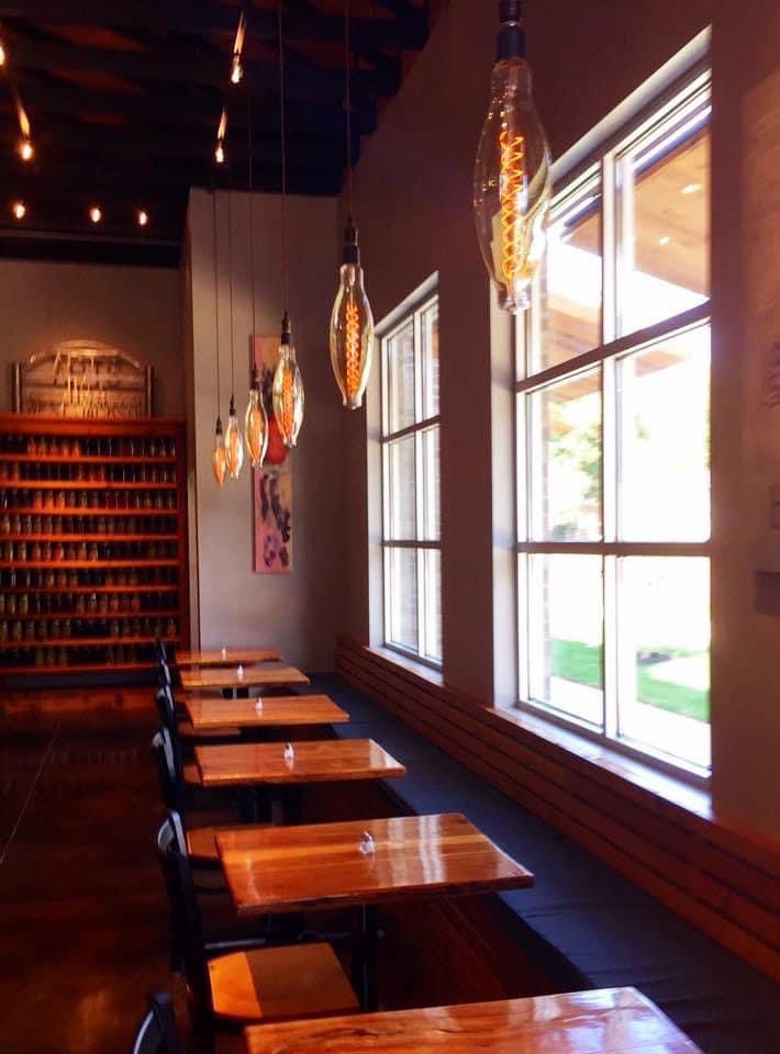 elegant touch! Once inside, you start to notice all the cool features like the neon “Love your Craft” sign projected on the wall, along with the beautiful wood tables and Edison lighting.