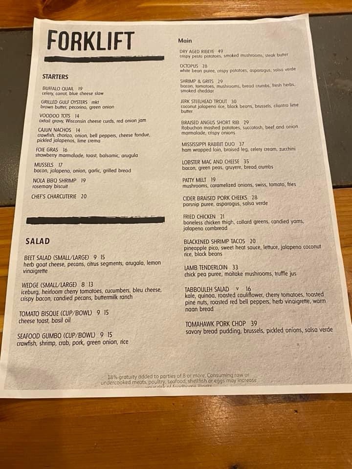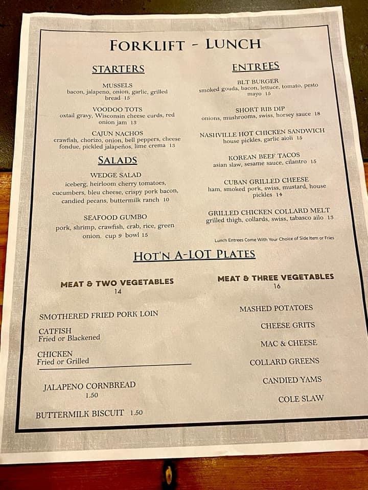 Whether you’re in the mood for fresh succulent seafood, savory steak, or both, set your sights on Forklift in Tupelo and enjoy the atmosphere, food, and flavors! Happy Trails!